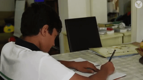 Arnav sitting down to do his work.