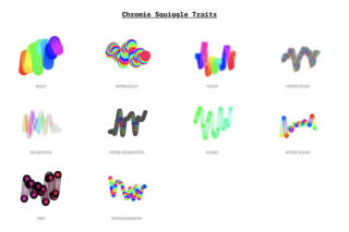 Hex pairs in the seed also control the starting color, rate of change of the gradient, amount of points in each squiggle, plus some surprise features that make some squiggles rareR than others.[8]