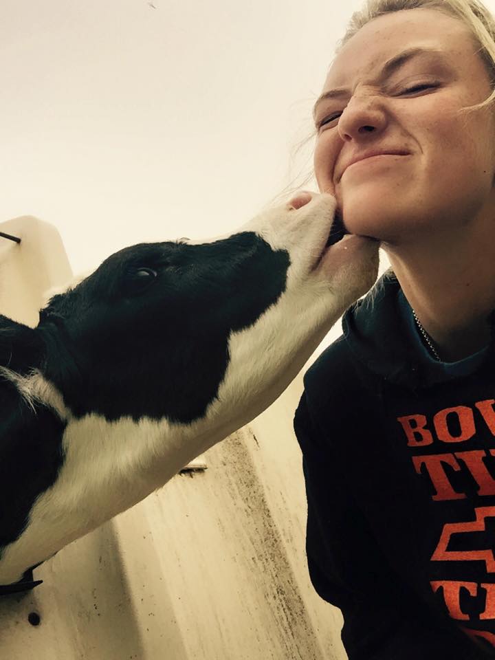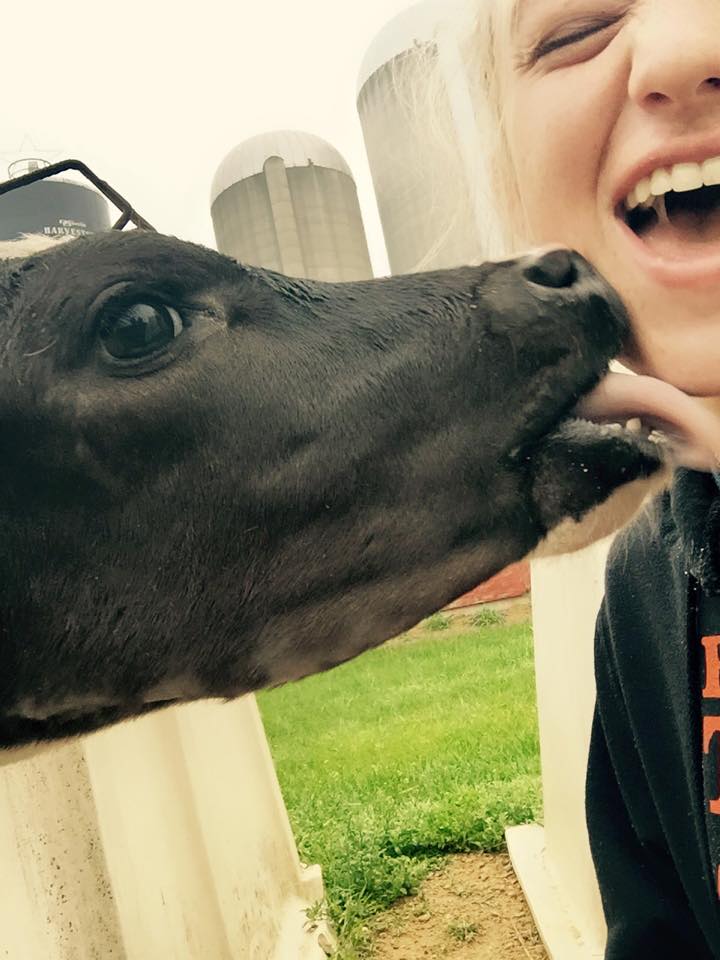 Citation Linkywqaugeunhowzrcj.public.blob.vercel-storage.comAnother picture of her being kissed by a cow.[2]