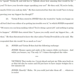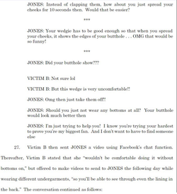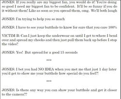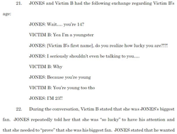 In one chat last month, Jones told one girl — identified as Victim A — to dance in a sexually suggestive manner and "make it clap super loud and talk about your age the whole time," according to the complaint.