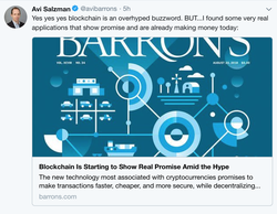Post on twitter by Avi Salzman about some of the worthy projects of interest in Blockchain technology.