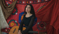 Photo of Bedouine with her guitar.