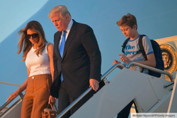 Barron Trump stepping off Air Force One with his family holding a fidget spinner