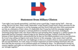 Trump's senior communications adviser, Jason Miller, said that Clinton had "ripped off her mask and revealed her true contempt for everyday Americans." [1]
