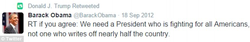 Trump took the opportunity to capitalize on Clinton's gaffe with a series of tweets, including a retweet of Barack Obama from four years ago criticizing Mitt Romney of "writing off half the country."