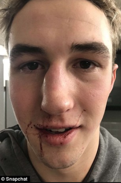 One of the images of Ben Kebbell from a Snapchat that he shared moments after being punched in the face his ex-girlfriend, Kathryn A. Mohoney.