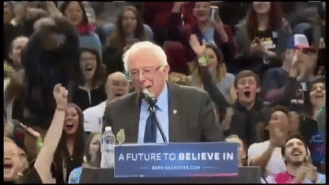 It was at that point that Sanders' expressions were pretty much priceless and the entire crowd burst into cheers and a standing ovation.