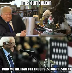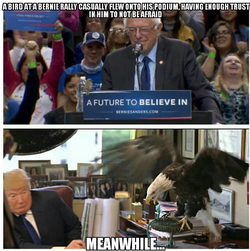 It started due to an occurrence at a political event on March 25, 2016 at a Bernie Sanders rally in Portland, Oregon. A small bird visited the building and stood on the podium as Bernie Sanders (Politician) delivered his speech to supporters.