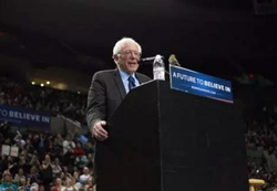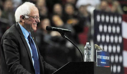 That got Sander's attention, so he interrupted his speech and turned to see what the people were pointing at.