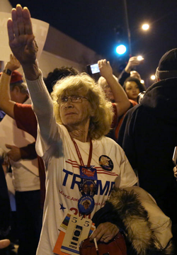 She was photographed in Donald Trump campaign swag, giving a Nazi salute.
