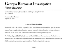 On August 26, 2016, Adkins was arrested at his St. Simons, Georgia residence on charges for child molestation and aggravated child molestation. [1]