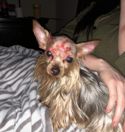 Boo had left the house and when it came back the head was bleeding.