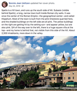 Screenshot of a Facebook post by Bonnie Ueltzen about the place she lives in Italy.