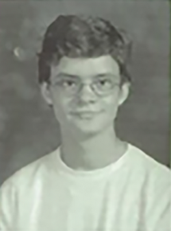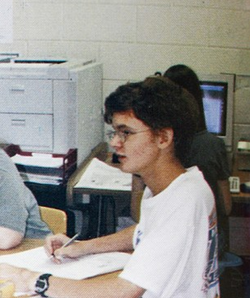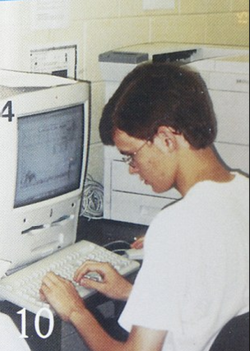 Photo of Brandon when he was in High School using the computers at school.