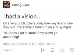 In one post she stated, "I had a vision of a very public place, only one way in and one way out.