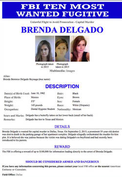 As of April 2016, Delgado is wanted by the FBI – Federal Bureau of Investigation for capital murder in Dallas, Texas.