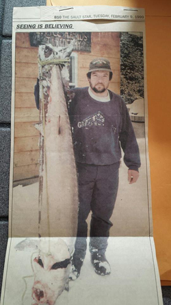 104 pound Sturgeon in Bright Lake - source: Sault Star February 9, 1999