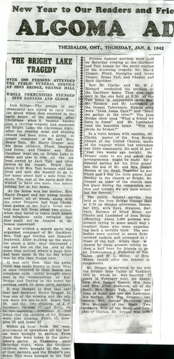 Iron Bridge newspaper reported 7 people had drowned in Bright Lake.