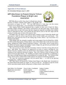 BLA applied successfully to the Ontario Trillium Foundation for a Grant to support a thorough limnological evaluation of Bright Lake (Press Release) [9].