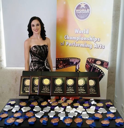Britt Goodwin, OFFICIAL HOSTESS FOR THE 20TH ANNUAL WORLD CHAMPIONSHIPS OF PERFORMING ARTS (WCOPA), CALIFORNIA. Dancer, Choreographer, Singer, Actor, Model. Lyrical Champion of the World. Tap Champion of the World. Song and Dance Champion of the World. WCOPA Award Tally: 55 awards including seven overall division champion of the world awards, three finalist awards, 10 gold medals, 17 silver medals, 15 bronze medals and three industry awards. Recipient of two scholarships to the prestigious Millennium Dance Complex. Dance teacher/choreographer at Goodwin Performing Arts, Australia. Talent Scout for the World Championships of Performing Arts, California, USA. Summer Intensive 2016 at TOKYO the Academy, Louisiana, United States. [1]
