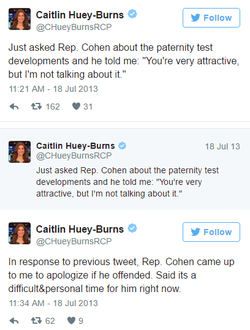 In 2013, Rep. Steve Cohen called Caitlin "very attractive" after she asked him about his paternity test developments. He later apologized for his inappropriate comments.