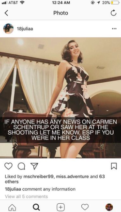 Her friends and family posted on social media requesting for the public's help locating her. She was later confirmed as one of the victims in the shooting.