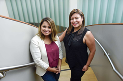 Carolina Huaranca, right, with Kapor Center's Chief Tech Community Officer Lili Gangas at the Kapor Center for Social Impact in Oakland, CA.
