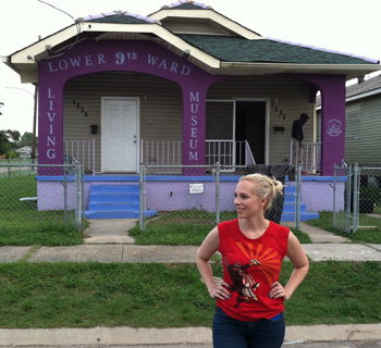 She drove to New Orleans the week after Hurricane Katrina to assist with rescue and relief efforts. While there, co-founded the New Orleans Women’s Shelter and the Lower Ninth Ward Living Museum.