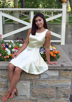 Photo of Casey Jordan wearing a dress as part of her senior class photos.