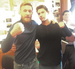 Once McGregor was inside of the Ira Judelson offices, he took a photo with his son, Casey.