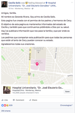 En Marzo 2017, Cecilia fue declarada con muerte cerebral.