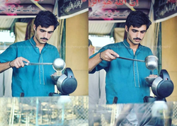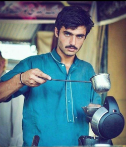 An Islamabad, Pakistan-based Photographer Jiah Ali(Jiah's Photography) spotted Arshad Khan (tea-seller"ChaiWala") in one of the Islamabad’s Sunday Bazaar and posted his photographs on her Instagram account, soon the picture went viral and created buzz especially among girls.