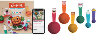 The measuring cups are microwave and freezer safe, BPA-free, colorful, and designed to fit comfortably in a child's hand. The Kiddoz cookbook includes 20 illustrated recipes — each made with nothing more than Kiddoz cups and standard kitchen tools. The kit acts as a gateway to the immersive Kiddoz universe while shopping lists and videos accompany every recipe, cartoons guide the user, and the Chefclub app unlocks additional content in the form of healthy recipes based on classic French staples for unlimited cooking excitement.[6]