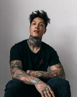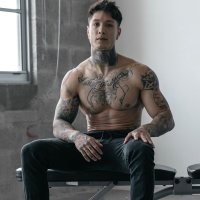 Chris has a myriad of tattoos covering his body. His knuckles say “redefine this mess.” His left hand displays a portrait of a woman with an ornament above her. His left shoulder shows an asymmetric structure with portraits surrounding it. His right hand has an Albert Einstein tattoo as well as a sea monster beneath it. Heria’s neck has a large flower tattoo next to it. His chest bears an inscription that reads “I will be heard” with three faces looking in different directions He also has a tattoo of serial killer Albert Fish on the inside of his left forearm. He has many other tattoos as well.