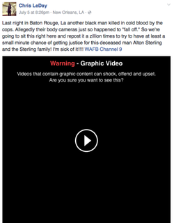 So he posted the video on all three Social media platform Tuesday evening, where it began getting shared numerous times, including by Shaun King of the New York Daily News, who uploaded the video on his Facebook less than an hour after LeDay had posted it on his Facebook page.