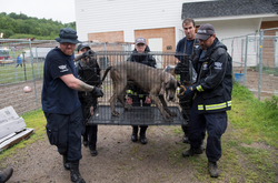 The men circled Fay with arms and rescued the dogs.