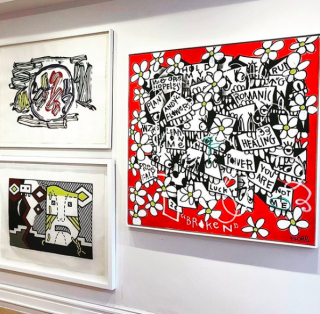 He loves words and chop up thoughts in his paintings and combine it with the energy of New York City.