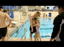 His daughter, Grace, cheered him on poolside.