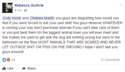 One June 14, 2017 David Hache posted a video of Cody and his girlfriend Chelsea Martin abusing their dog to expose them. The video soon went viral receiving over 4000 shares on Facebook. Cody and his girlfriend are seen in the
