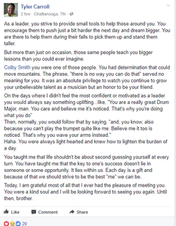 Colby Smith is a graduate for Bradley Central High School in Cleveland, Tennessee. At Bradley, Colby was involved in the band and the school's band camp. He also ran track for the school's team. [1] [undefined]