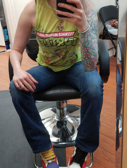 She often wore Adidas shoes with different color laces. One of her favorite t-shirts that she loved to wear was her green Teenage Mutant Ninja Turtles one.