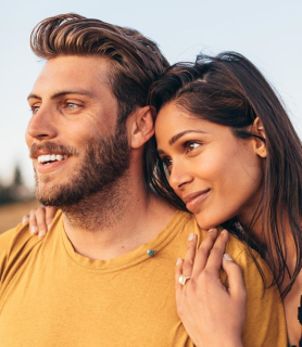 Cory Tran with his fiance Freida Pinto