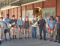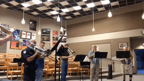 He also makes visits to classrooms in the music department and jams with the students by playing his Trombone. He also plays the instruments at community events as well.