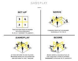 [8]The player in square 4 serves from out of bounds to the player in square 2 who then can return it to any player.