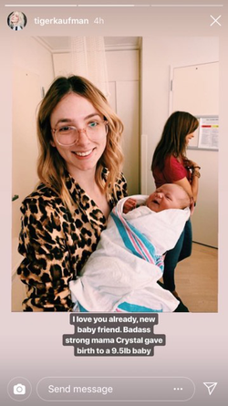 Citation Linkywqaugeunhowzrcj.public.blob.vercel-storage.comInstagram story post by Tiger Kaufman, about the birth of Aurora Rose Pierce.