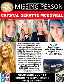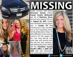 McDowell was last seen at around 7:30 a.m. on August 25, 2017, right before she was scheduled to show a property in Crosby, Texas. The meeting was cancelled, due to Hurricane Harvey.