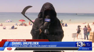 Daniel Uhlfelder is an attorney from Walton County, Florida.[1] He went viral after Faith Graham of WBBTV ABC 13 News interviewed him and allowed him to speak to the viewers against the opening of Florida beaches during the Coronavirus pandemic, while dressed as the Grim Reaper.