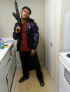 Inside of his apartment he likes to take photos of himself acting Thug. He often takes photos in the Kitchen area of his apartment, and makes it a repetitive notion to take