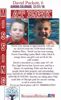 On December 31st around 5:30 PM, David went missing from the 15700 block of East Amherst Pace in Aurora.