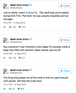 On 17 September 2016, Deadmau5, an electronic musician, accused Erik Fink of plagiarizing his cube.